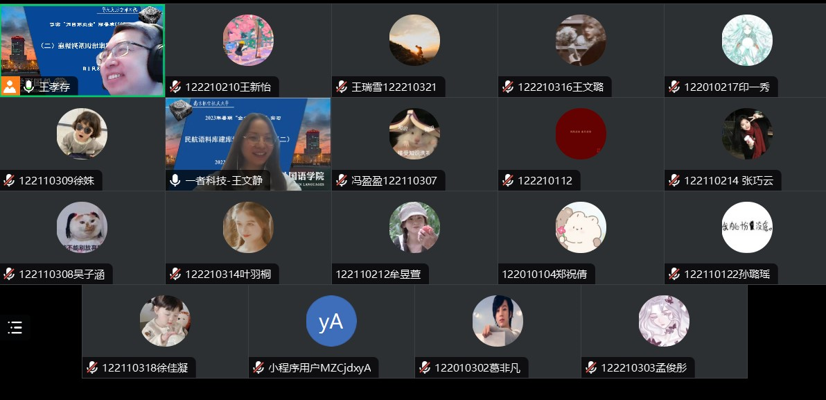 最后,王孝存做了总结,感谢一者科技的高度重视和王文静经理的用心讲授,认为本次系列讲座是人工智能时代校企协同培养民航语料加工人才的有益尝试,有助于在新文科建设背景下提升英语专业学生对于民航语言数据价值的认识,提高他们的民航语料加工技术能力,切实实现做学用合一,为智慧民航建设贡献英语专业学子的力量。